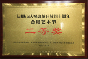 ·2018年10月,日照市慶祝改革開(kāi)放四十周年合唱藝術(shù)節(jié)二等獎(jiǎng)